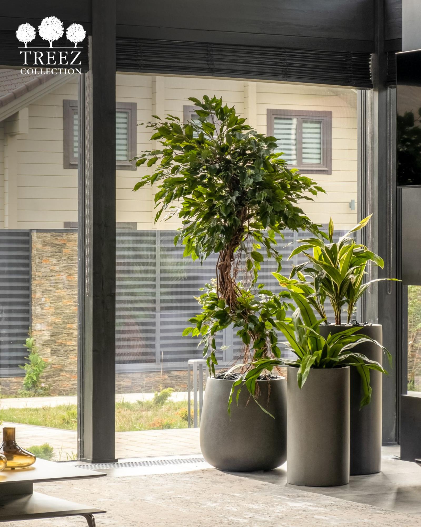 Крупные деревья в объемных кашпо, размещенные одиночно или группами, создадут масштабные акценты.