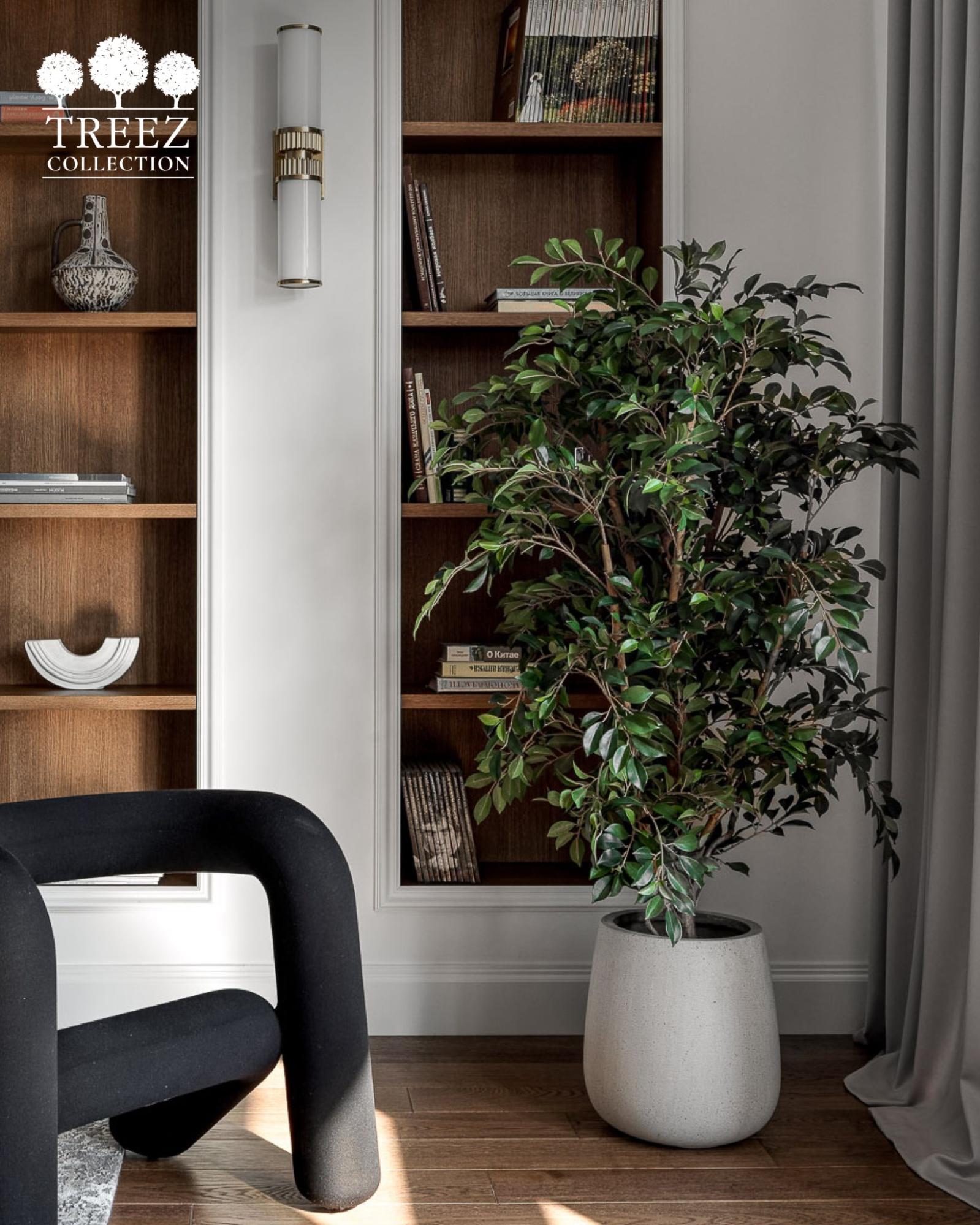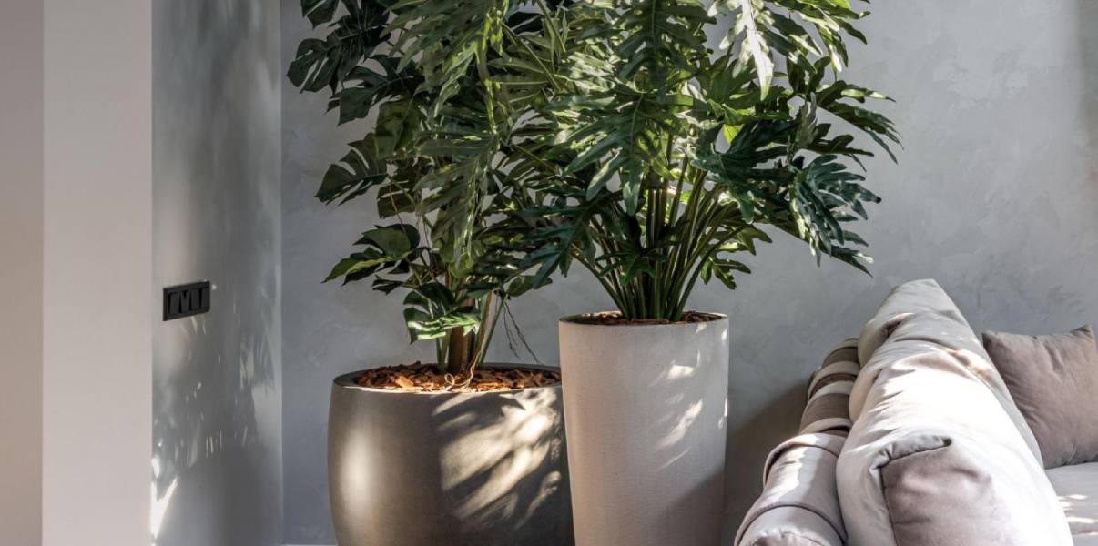 Растения уже сами по себе контрастны интерьеру — за счёт своей органической природы и зелёного цвета. Этот контраст можно подчеркнуть, сделать выразительнее — или, наоборот, смягчить и вписать в пространство деликатно.