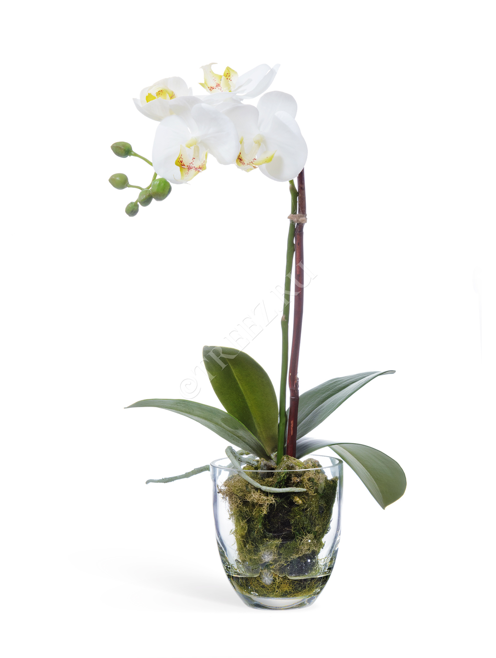 Орхидея Фаленопсис белая с мхом, корнями, землёй
