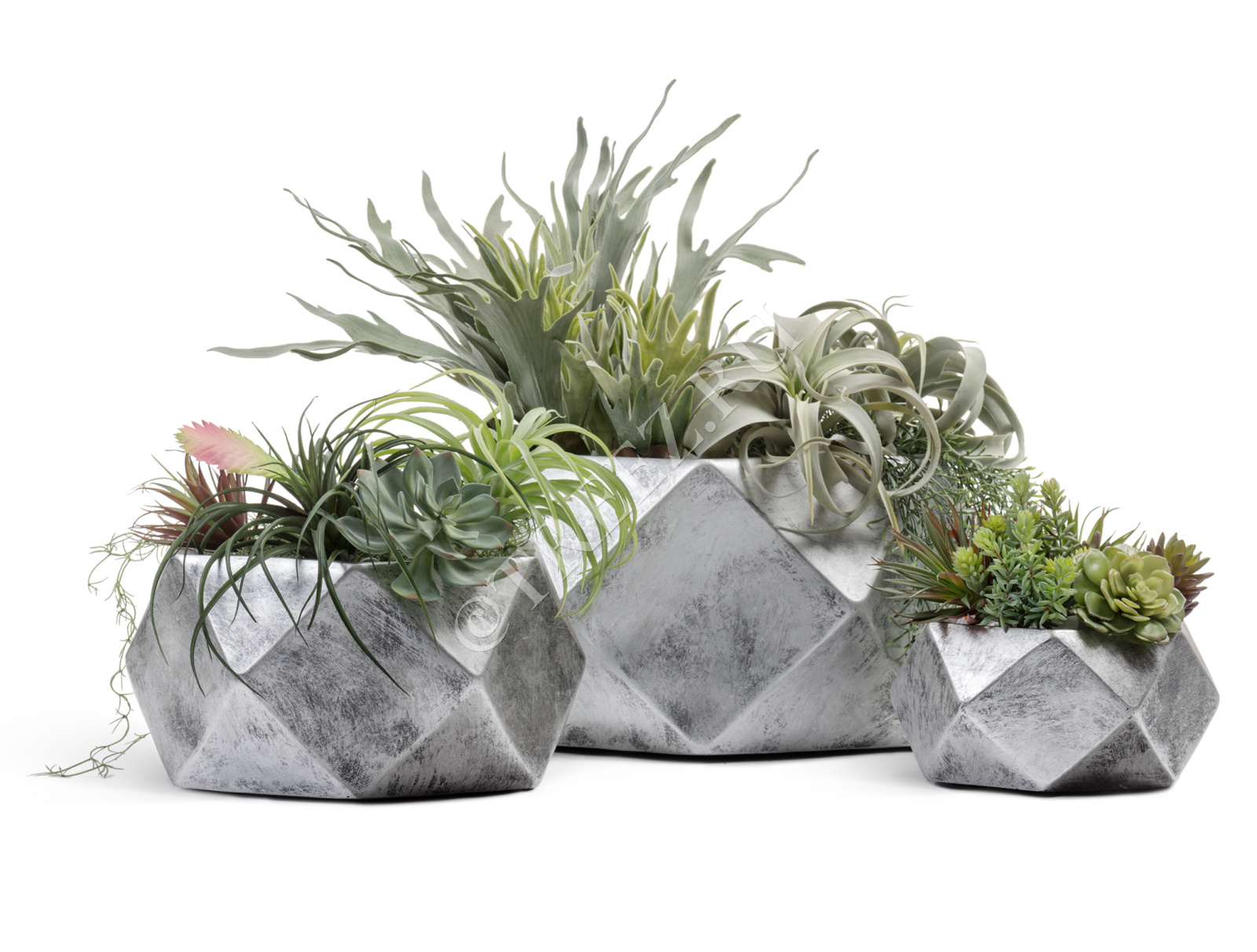 Кашпо TREEZ ERGO - Rombo - Низкая чаша-многогранник - Состаренное серебро