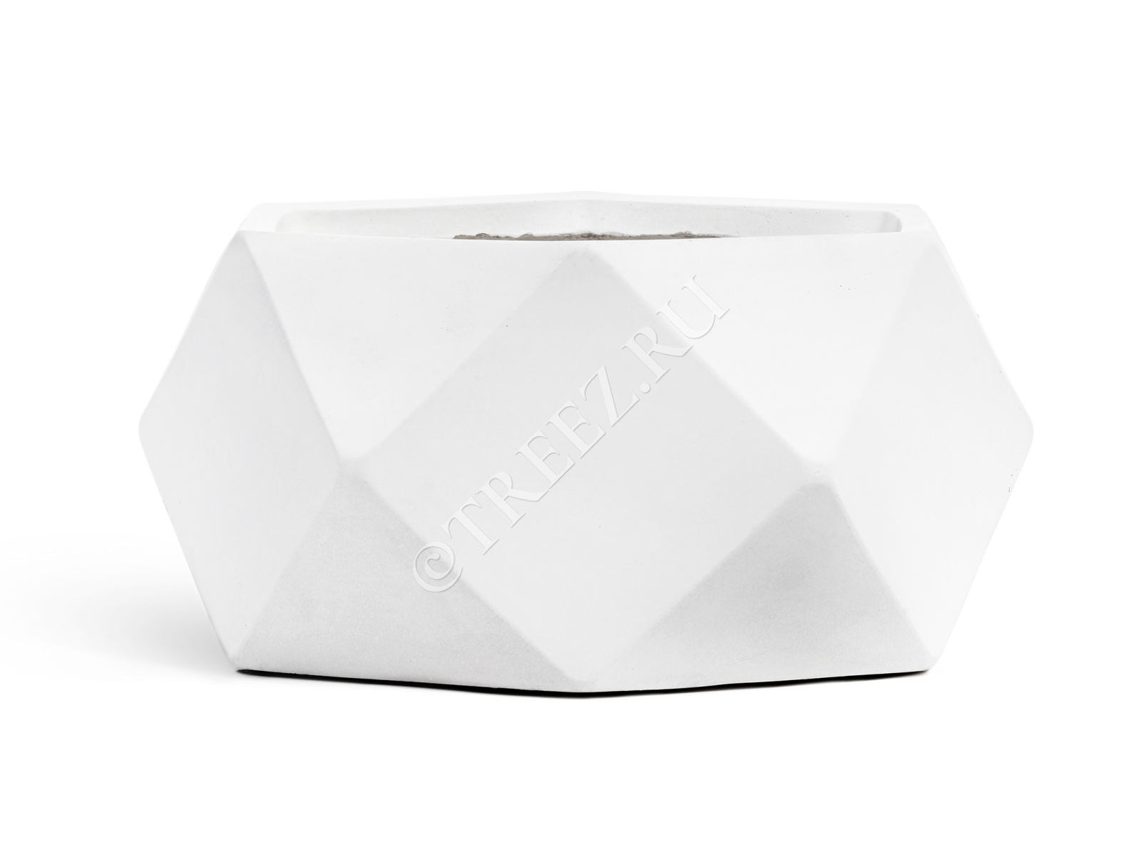 Кашпо TREEZ ERGO - Rombo - Низкая чаша-многогранник - Белый камень