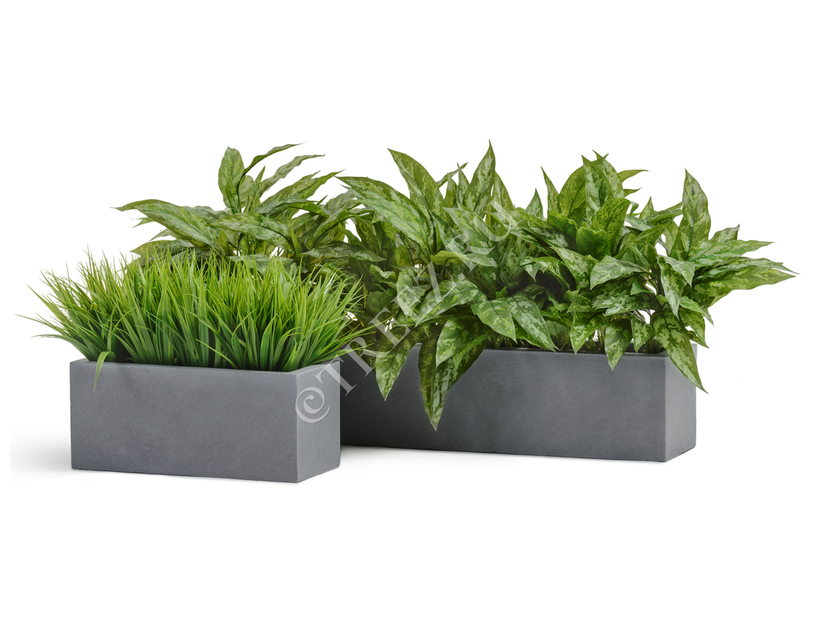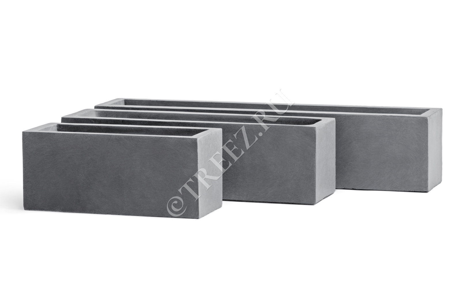 Кашпо TREEZ ERGO - Just - Узкий низкий прямоугольник - Светло-серый камень