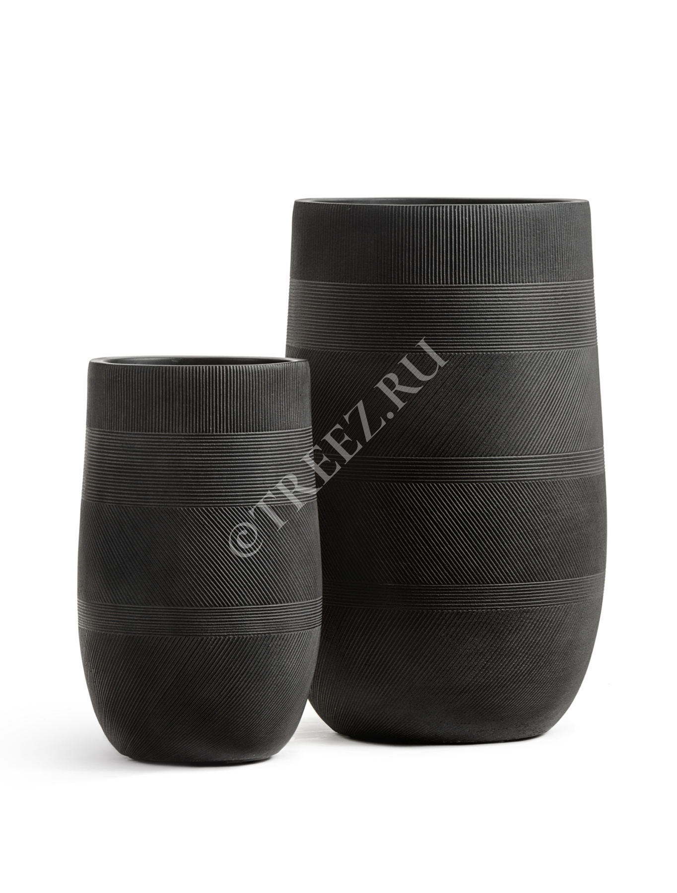 Кашпо TREEZ ERGO - Graphics - Высокая округлая чаша - Чёрный графит