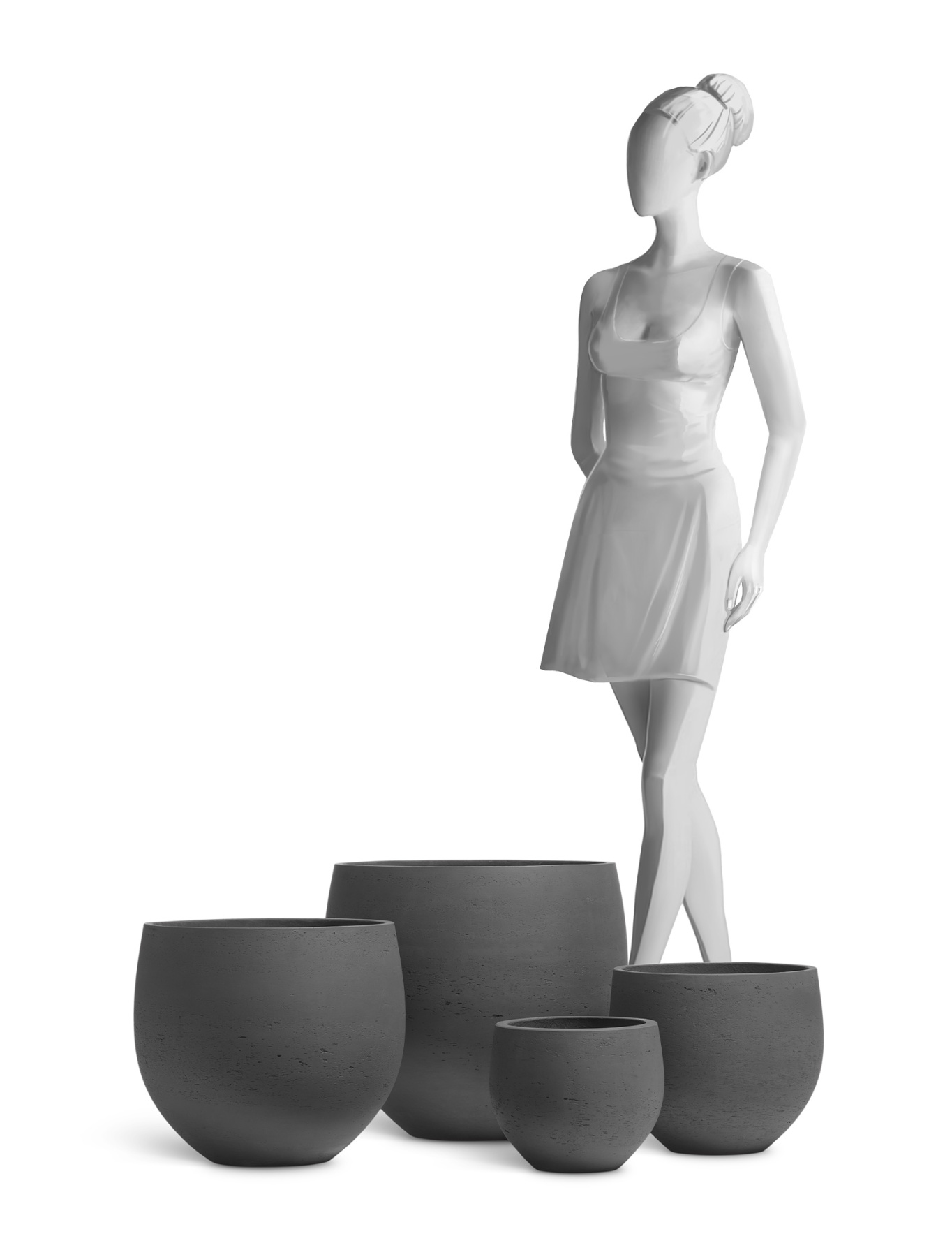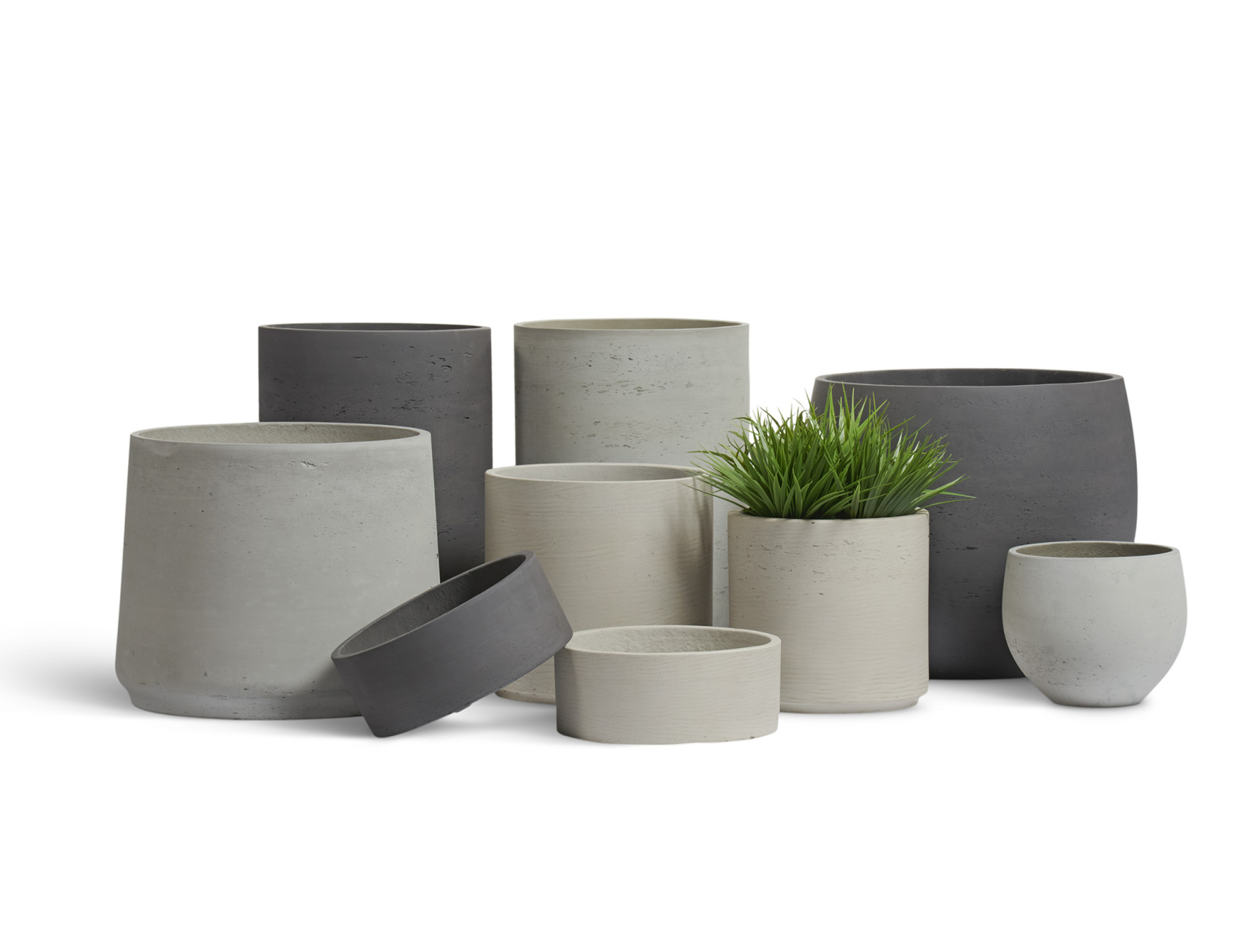 Основной материал, выбранный бельгийскими дизайнерами для этой коллекции, позволяющий создать качественно новые, современные, но доступные по цене кашпо - полибетон (композит - смесь бетона и полимерных смол). Полибетон воспроизводит все нюансы бетонных кашпо, но имеет значительно меньший вес и большую прочность. Поверхность кашпо полностью имитирует экстерьерный бетон, включая разнообразие текстуры и оттенков цвета на одном кашпо.