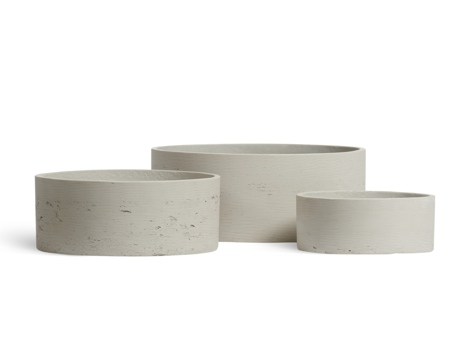 Основной материал, выбранный бельгийскими дизайнерами для этой коллекции, позволяющий создать качественно новые, современные, но доступные по цене кашпо - полибетон (композит - смесь бетона и полимерных смол). Полибетон воспроизводит все нюансы бетонных кашпо, но имеет значительно меньший вес и большую прочность. Поверхность кашпо полностью имитирует экстерьерный бетон, включая разнообразие текстуры и оттенков цвета на одном кашпо.