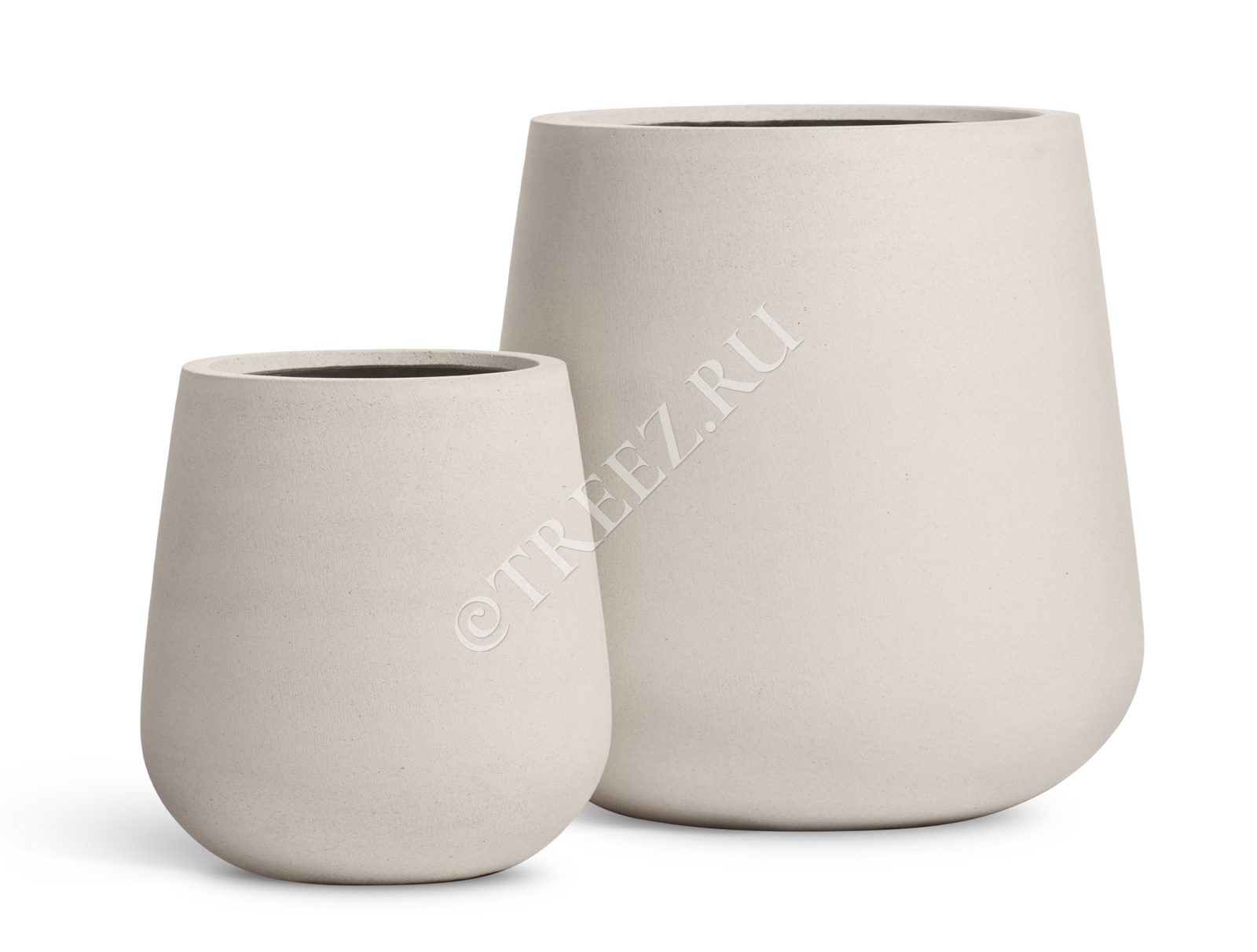 Кашпо TREEZ ERGO - Fine Rock - Высокая округлая чаша - Белый песок