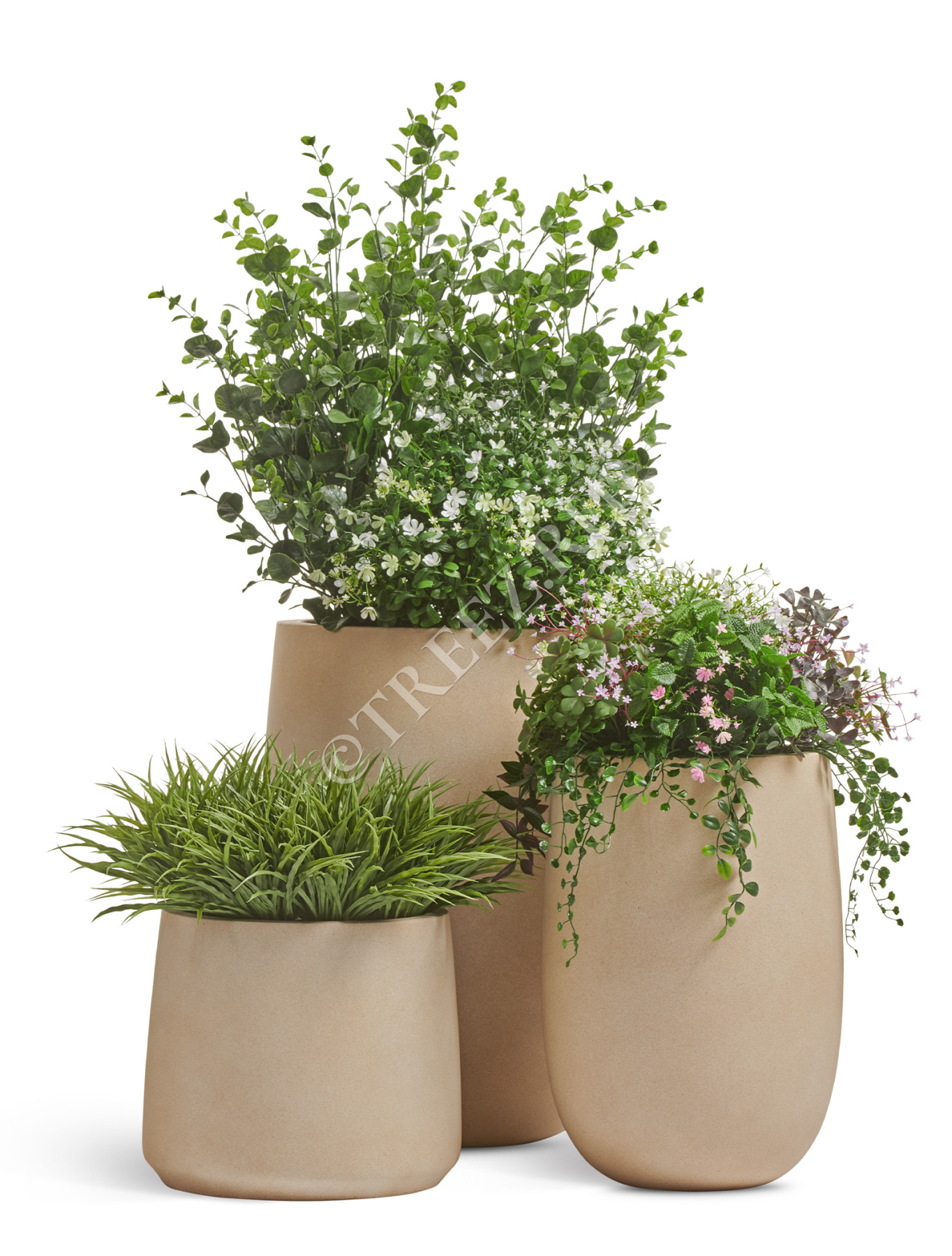 Кашпо TREEZ ERGO - Fine Rock - Высокая округлая чаша - Белый песок