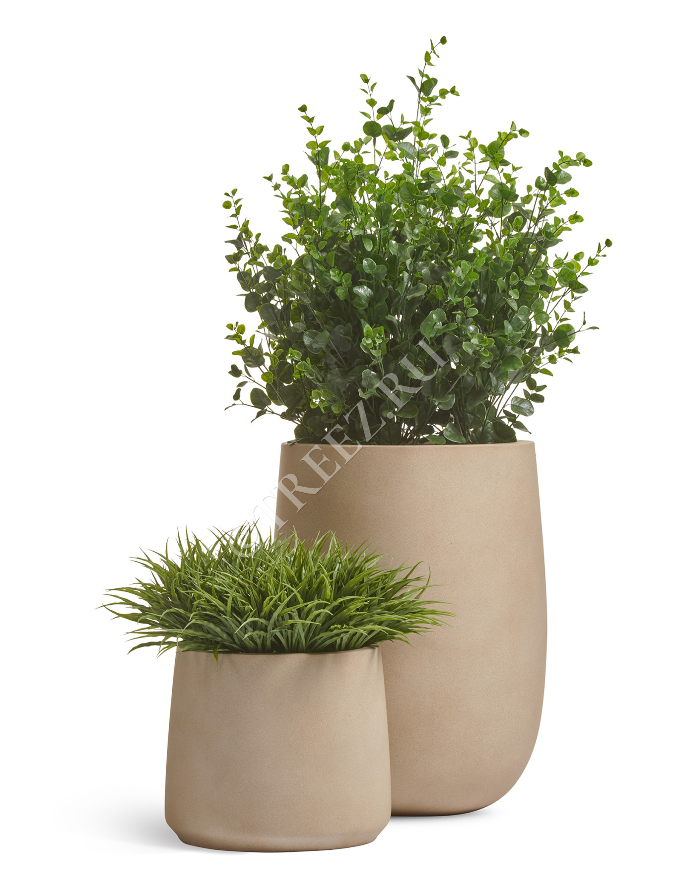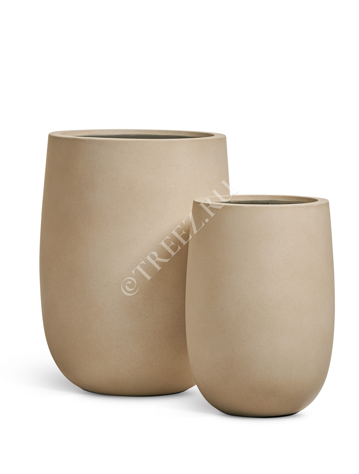 Кашпо TREEZ ERGO - Fine Rock - Высокая округлая чаша - Песок тёплый беж