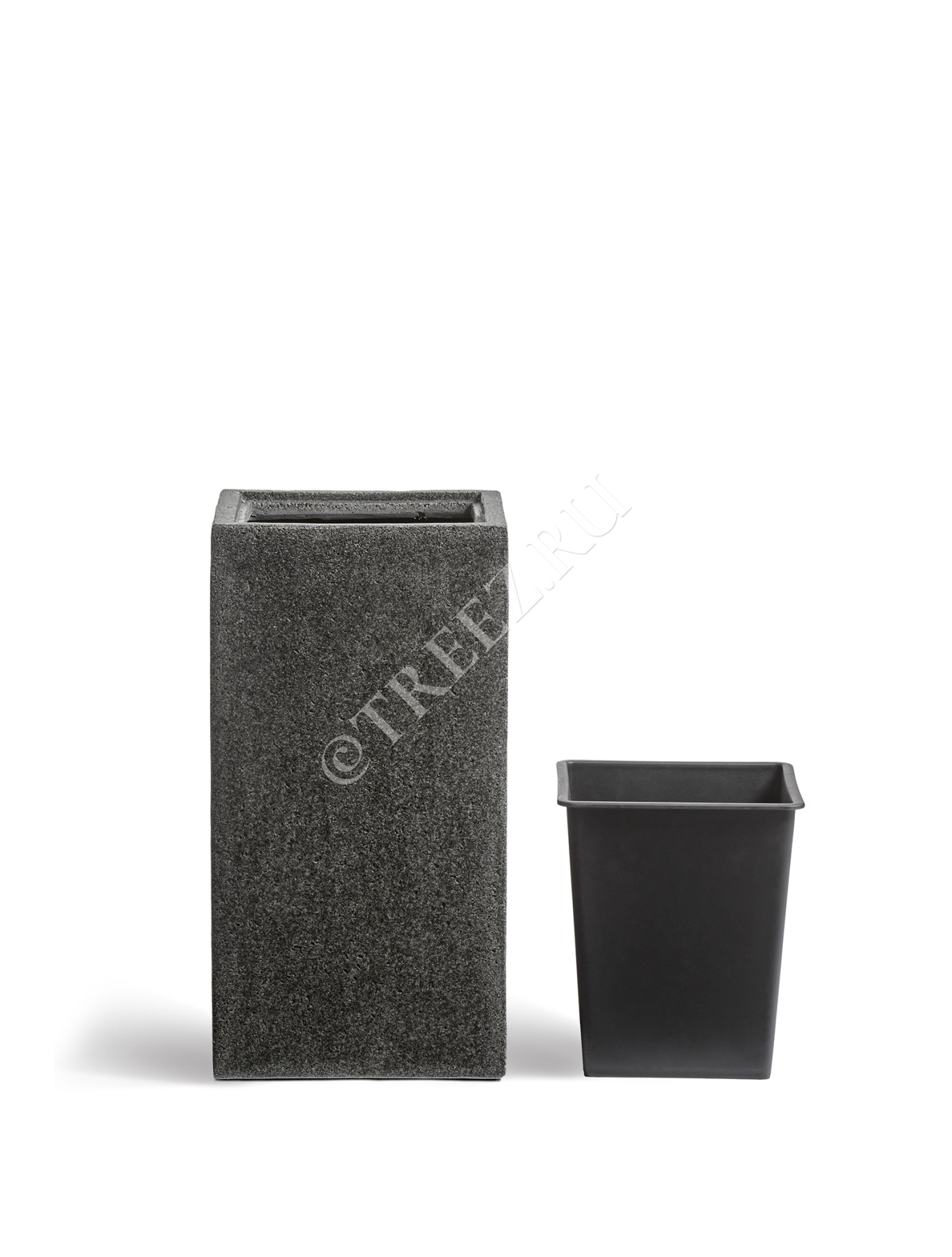 Кашпо TREEZ Effectory - Stone - Высокий куб - Тёмно-серый камень