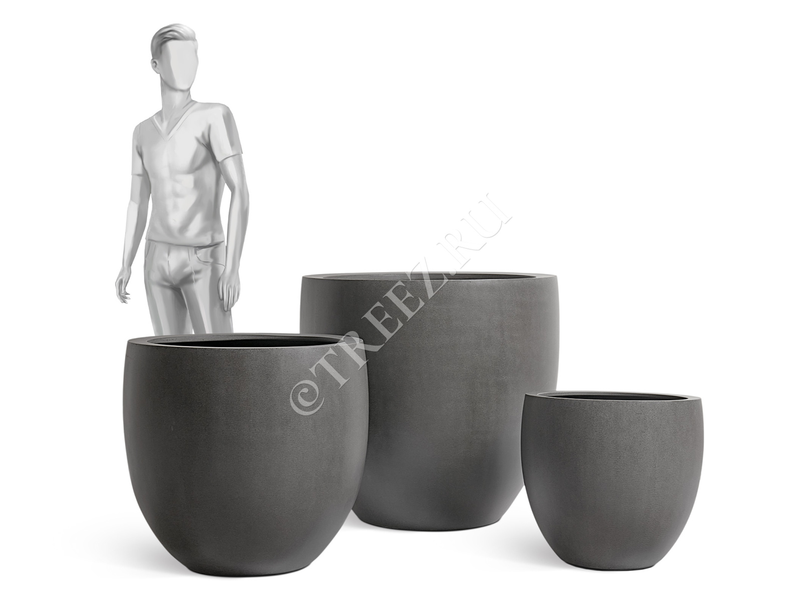 Кашпо TREEZ Effectory - Beton - Большой округлый конус - Тёмно-серый бетон