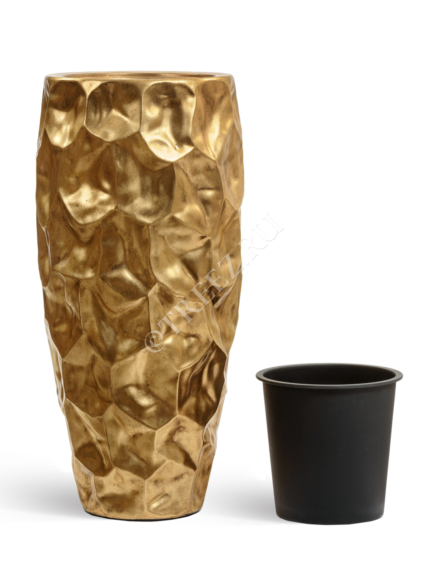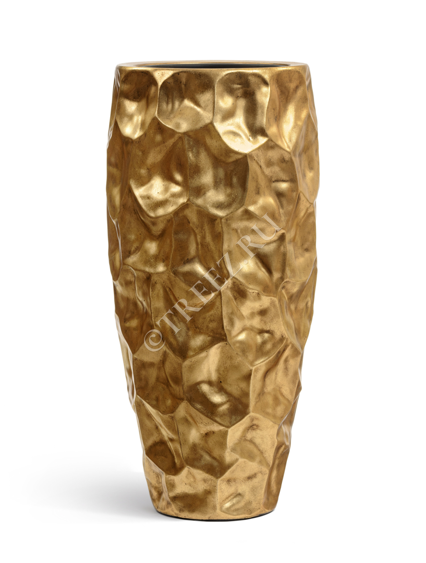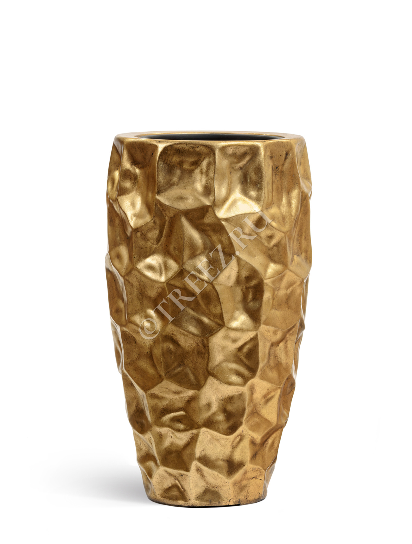 Кашпо TREEZ Effectory - Metal - Высокий округлый конус Design Crumple - Сусальное золото