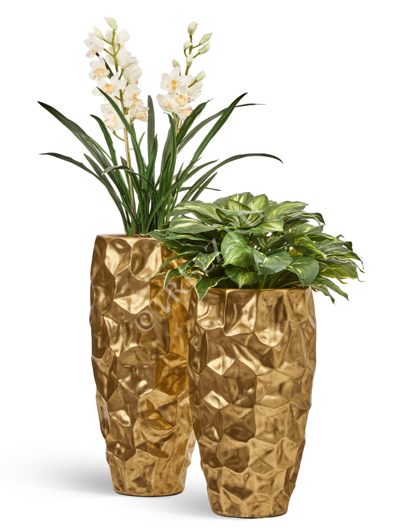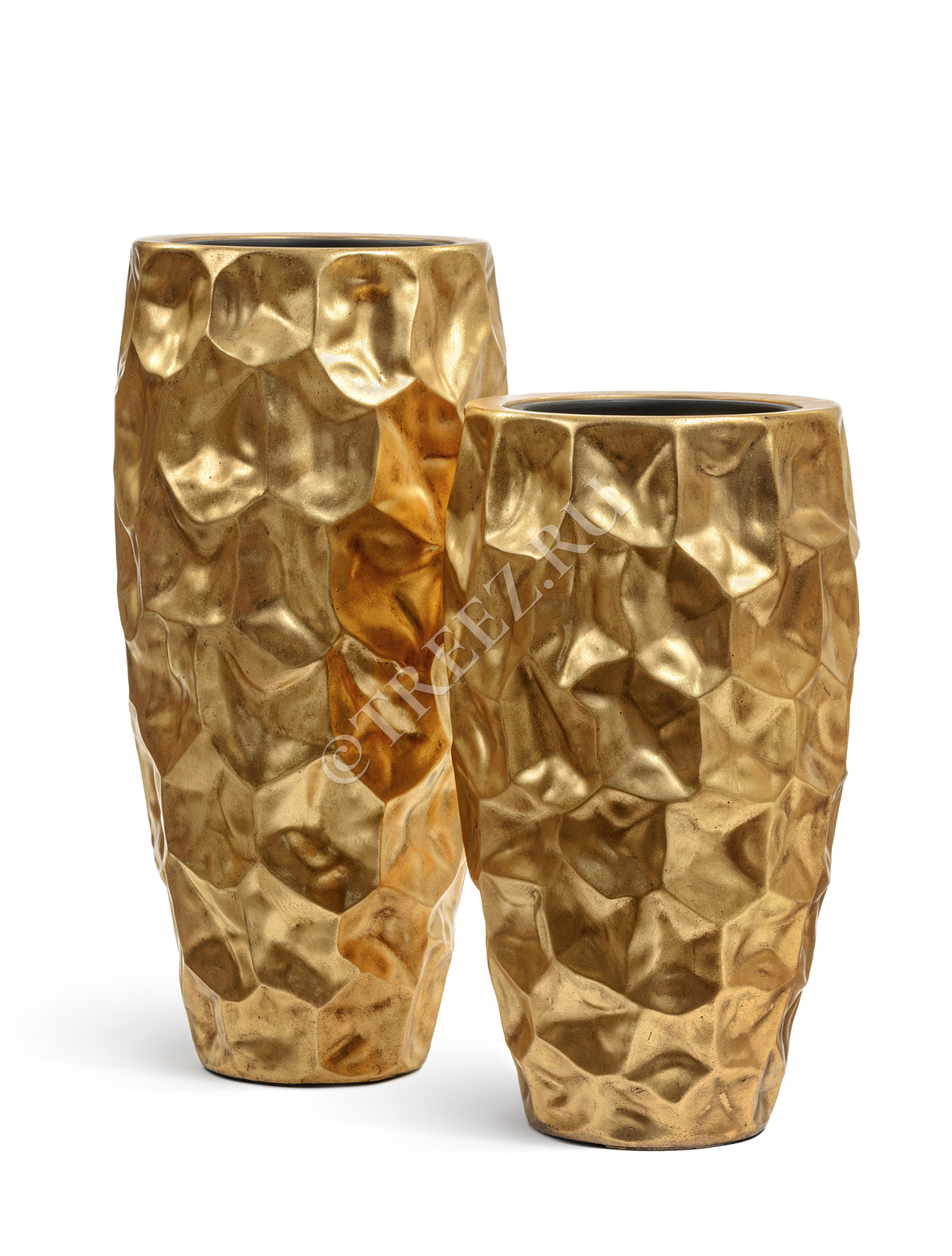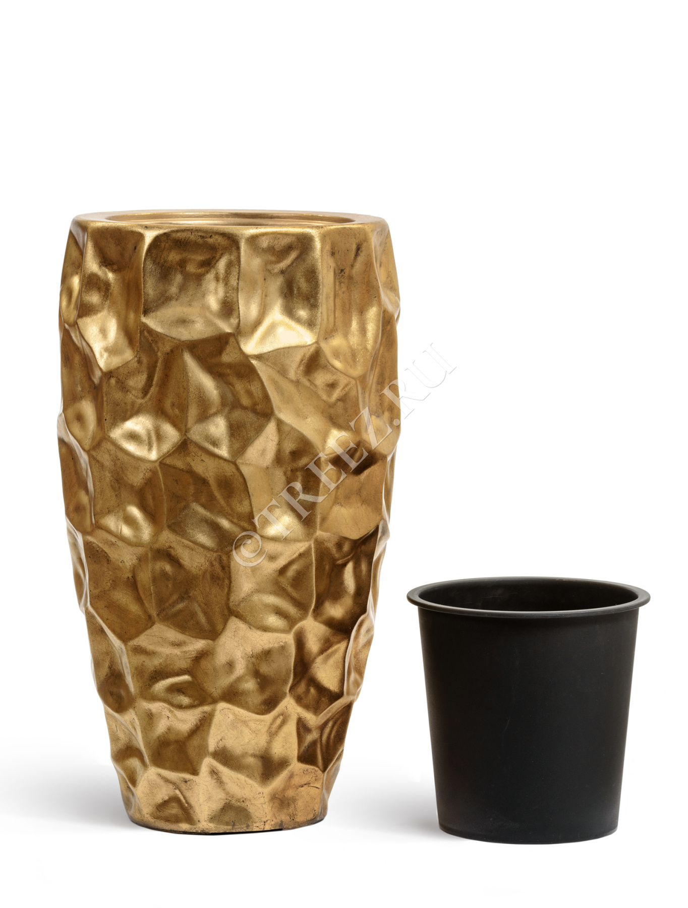 Кашпо TREEZ Effectory - Metal - Высокий округлый конус Design Crumple - Сусальное золото