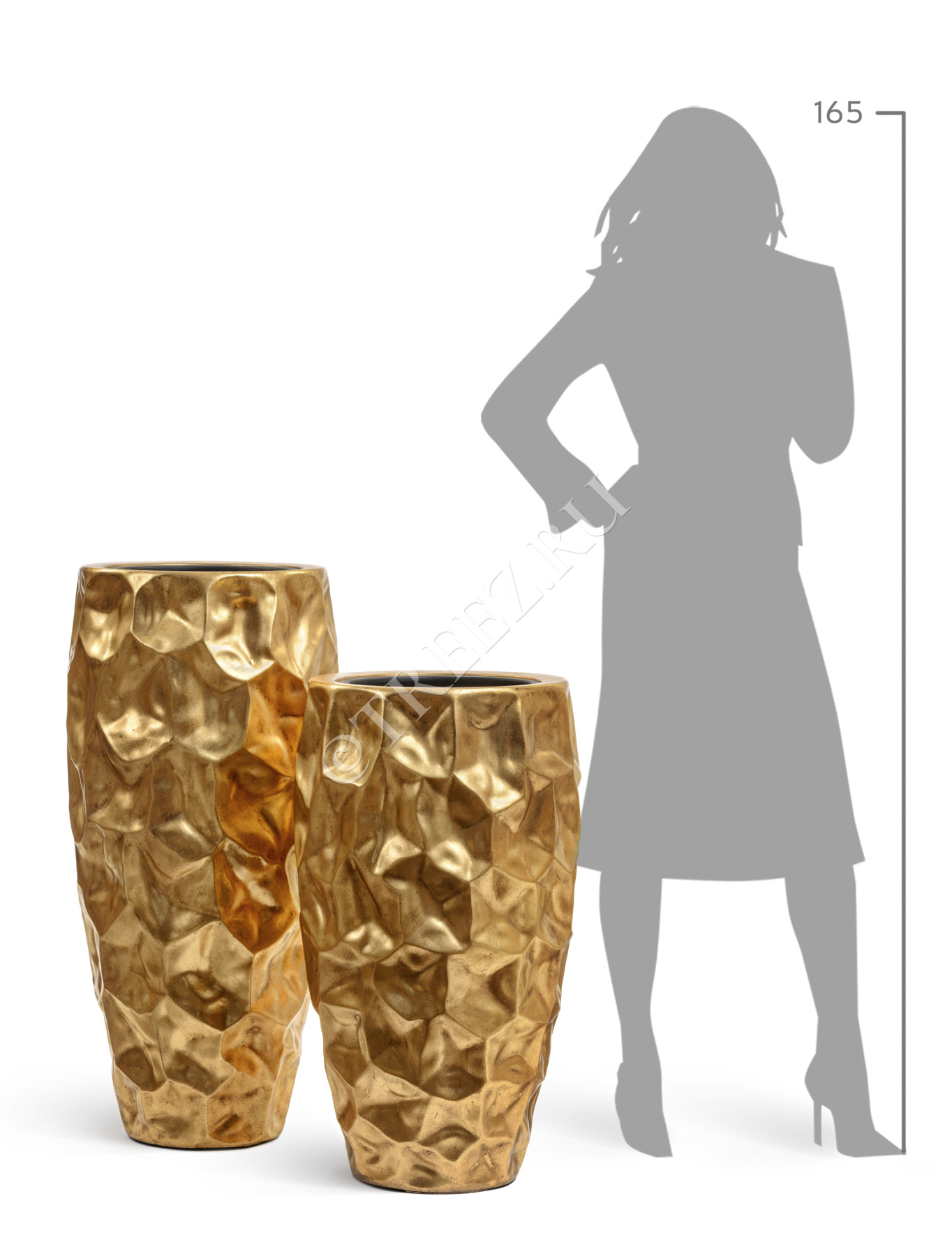 Кашпо TREEZ Effectory - Metal - Высокий конус Giant Design Wave - Сусальное золото