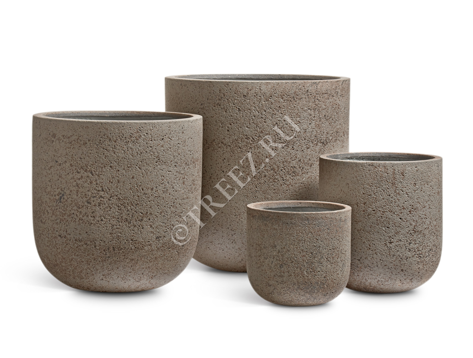 Основной материал, выбранный бельгийскими дизайнерами для этой премиальной, но демократичной серии, позволяющий создать еще более качественные и современные, но доступные по цене кашпо, -  фибробетон (композит - смесь настоящей каменной крошки, цемента и полимерной смолы). Фибробетон полностью имитирует фактуру камня, но имеет значительно меньший вес и большую прочность.