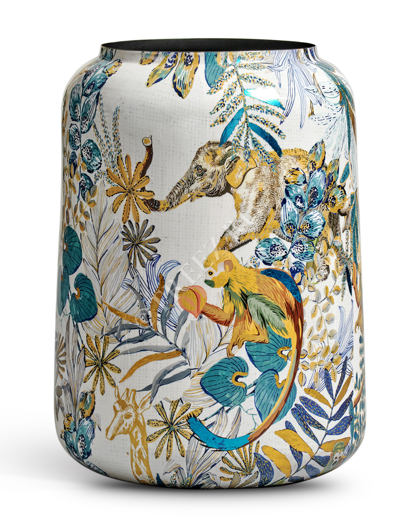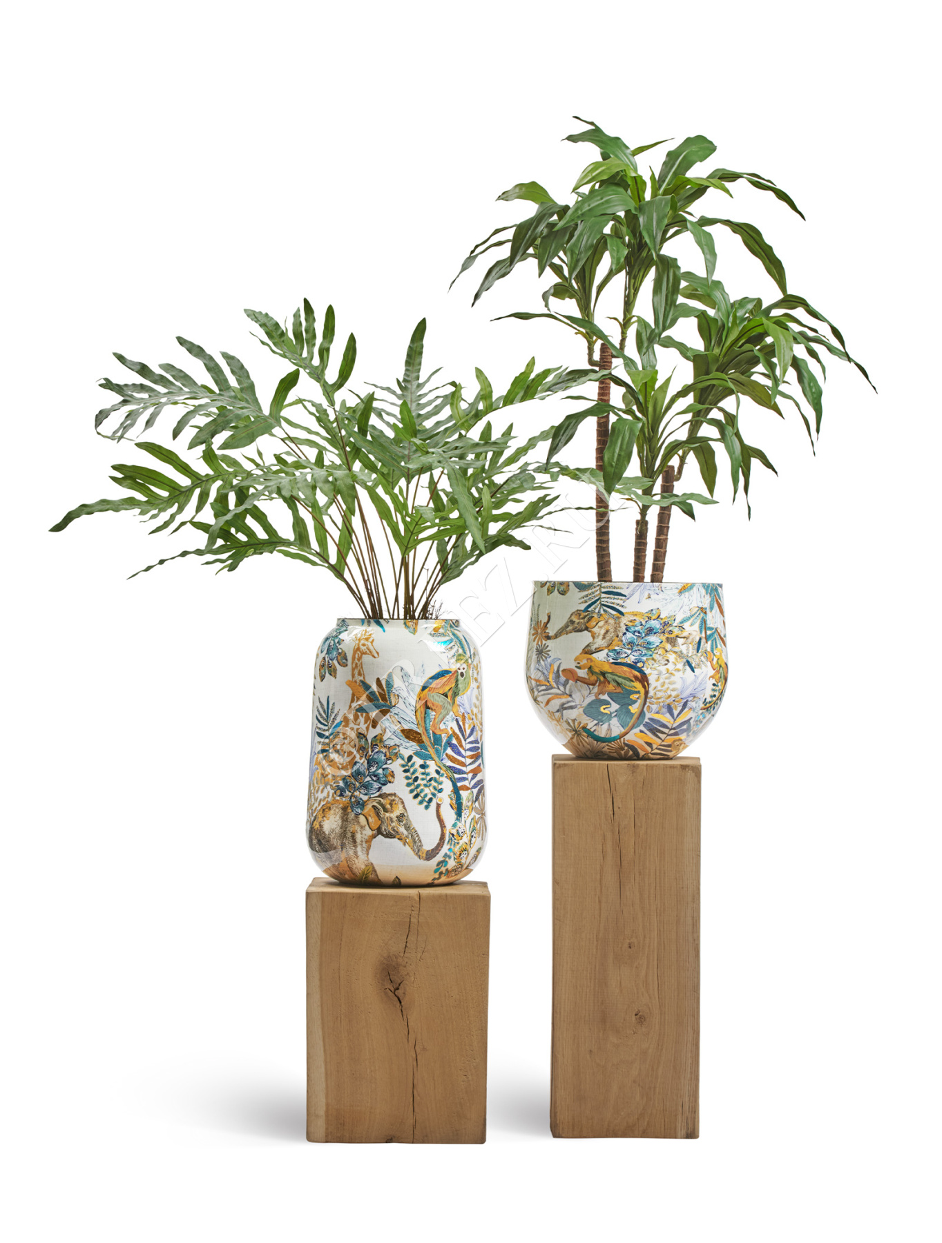 Кашпо коллекции Savage Garden созданы из настоящего металла и покрыты эффектной лаковой эмалью с трендовыми узорами и металлизированными украшениями рисунка.