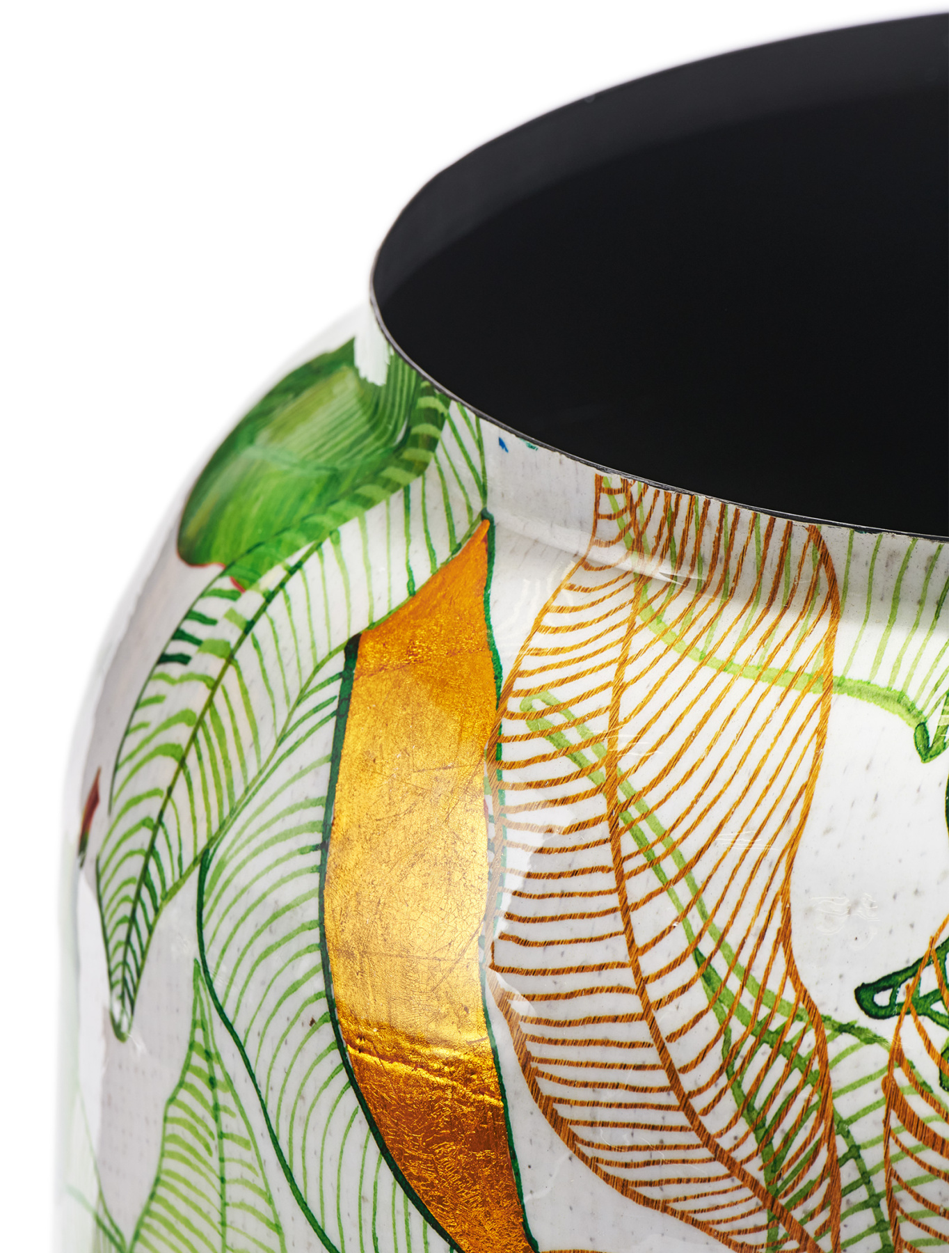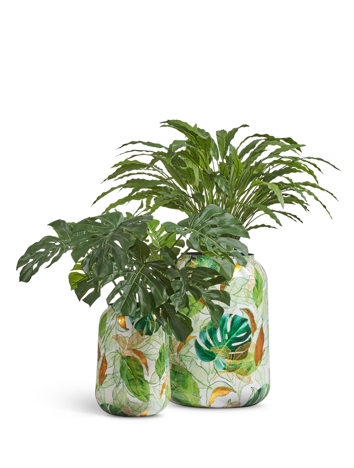 Кашпо коллекции Savage Garden созданы из настоящего металла и покрыты эффектной лаковой эмалью с трендовыми узорами и металлизированными украшениями рисунка.