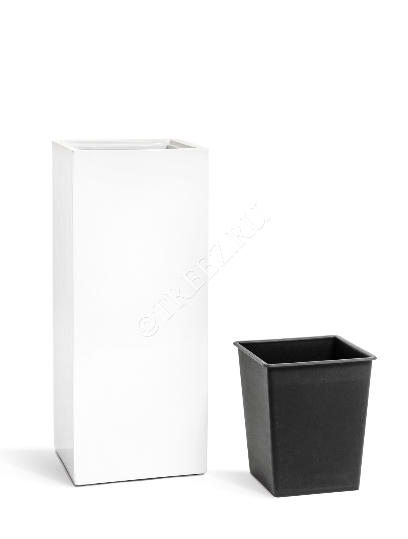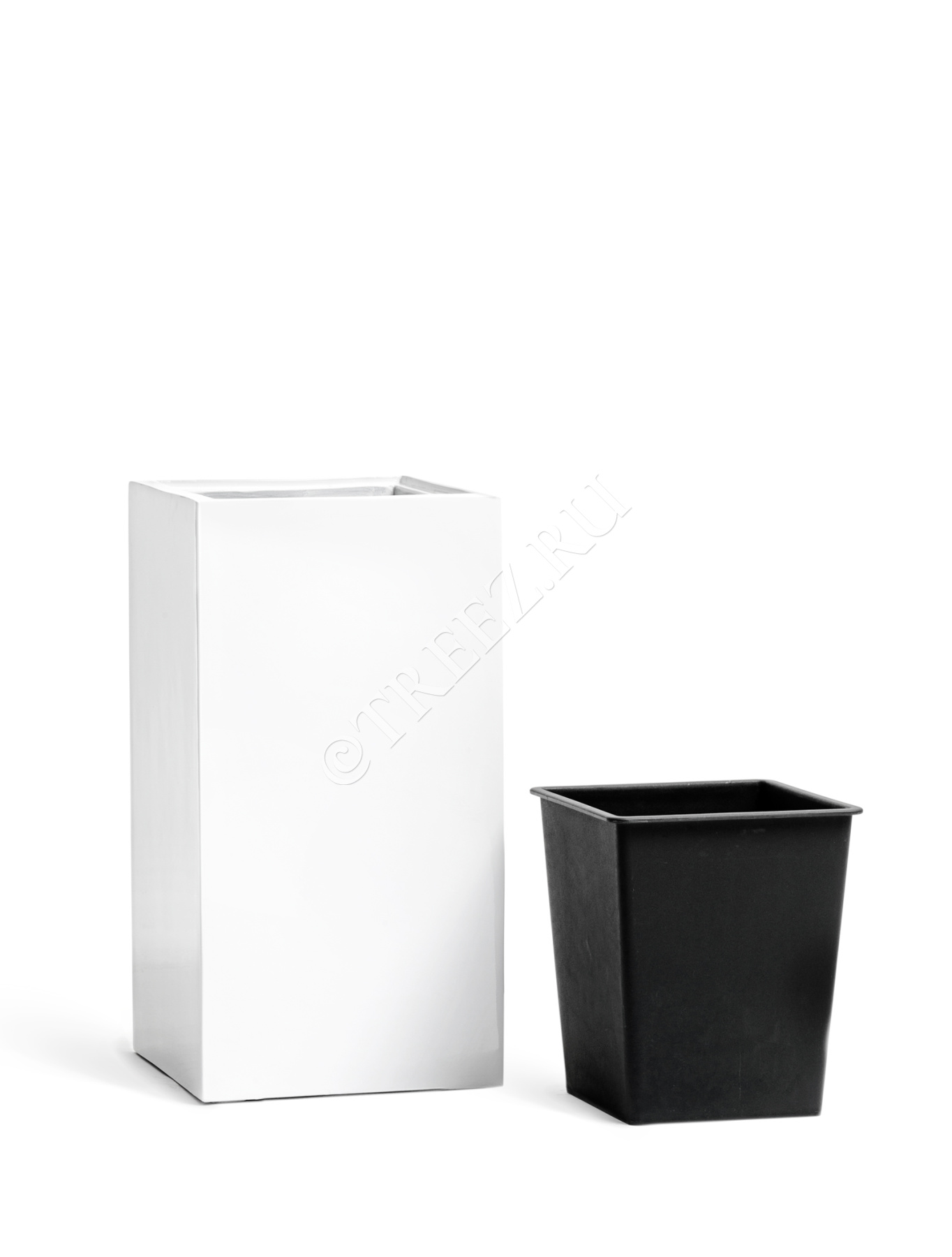 Кашпо TREEZ Effectory - Gloss - Высокий куб - Белый глянцевый лак
