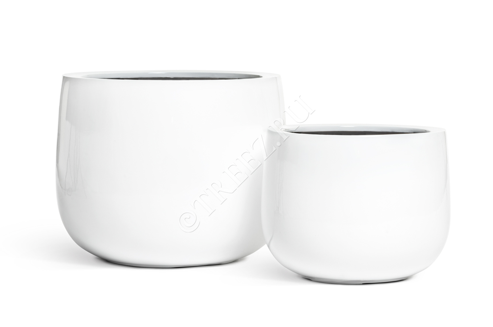 Кашпо TREEZ Effectory - Gloss - Низкая широкая чаша - Белый глянцевый лак