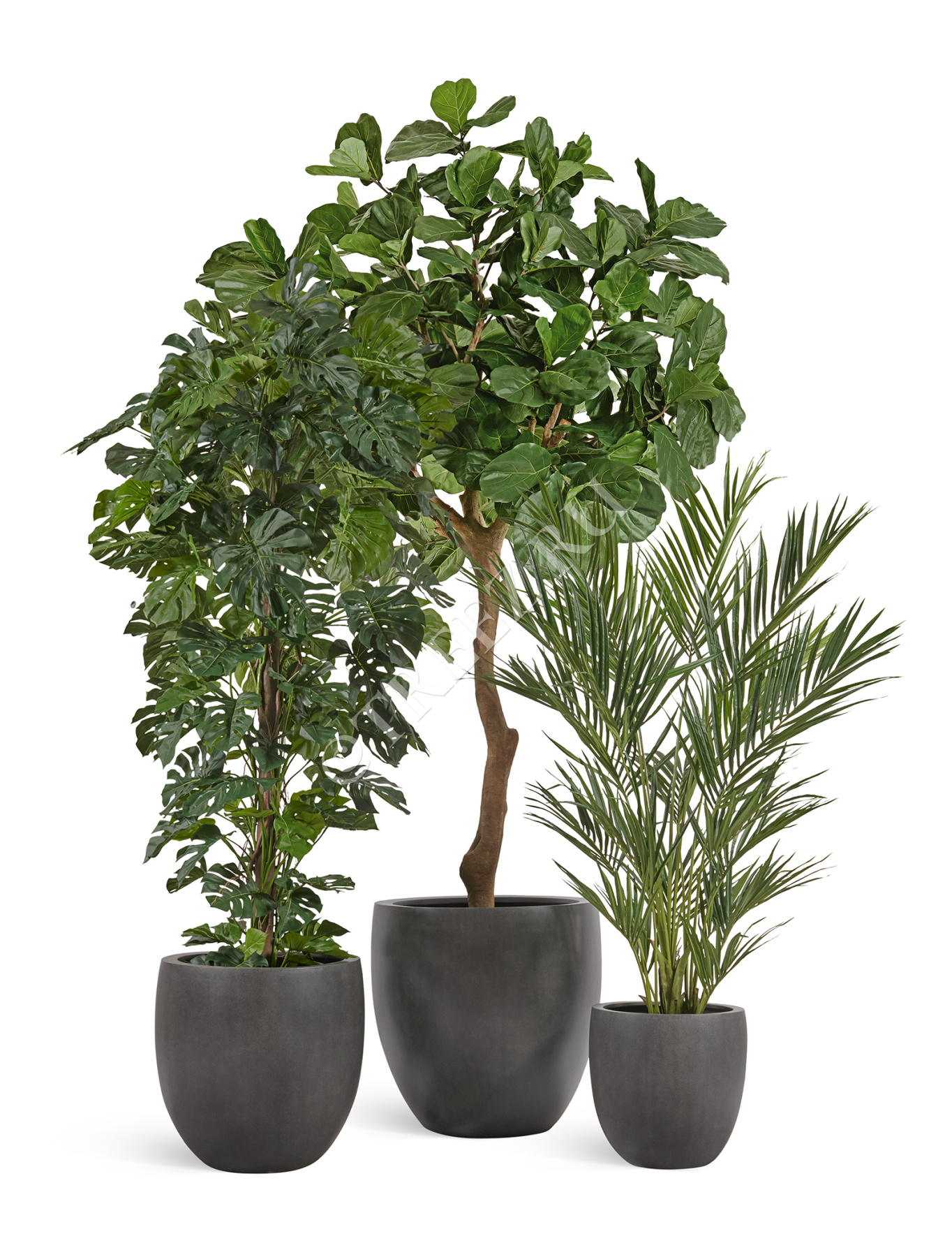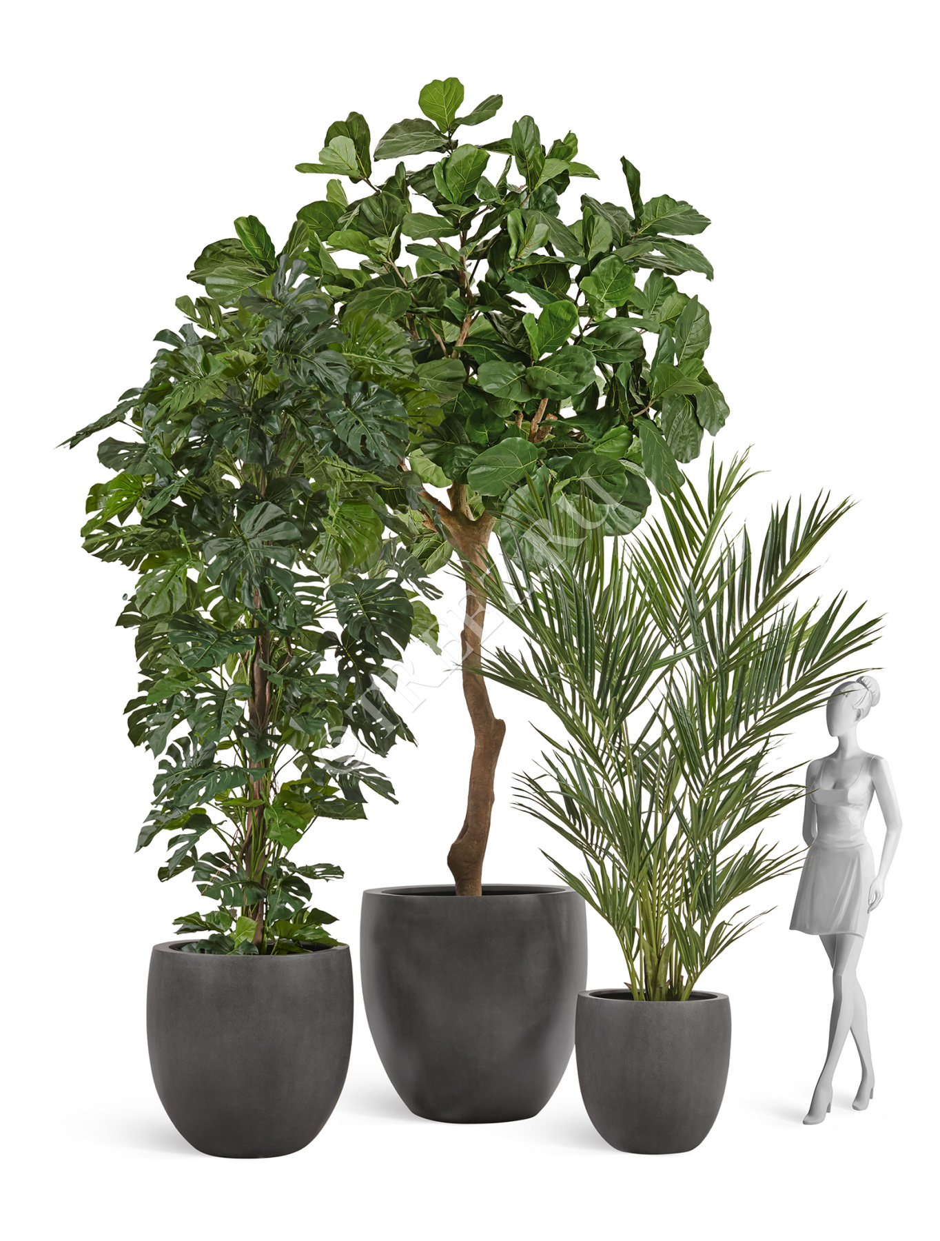 Эффектная огромная композиция для больших пространств, ТЦ, БЦ, лобби с высокими потолками. Не нужно ничего придумывать самим, все самые лучшие растения и подобранные под их размеры кашпо собраны вместе.