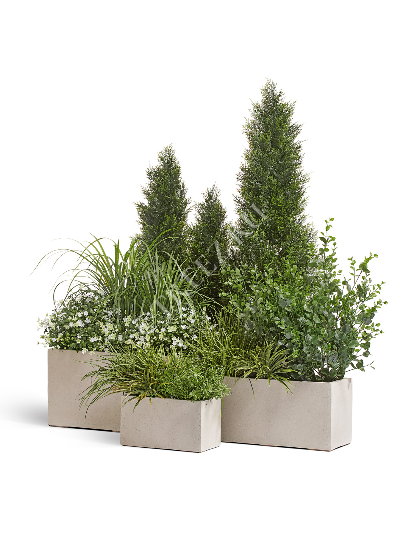 Сет № 45 - Композиция уличная большая в кашпо Treez Effectory Beton Белый песок прямоугольник