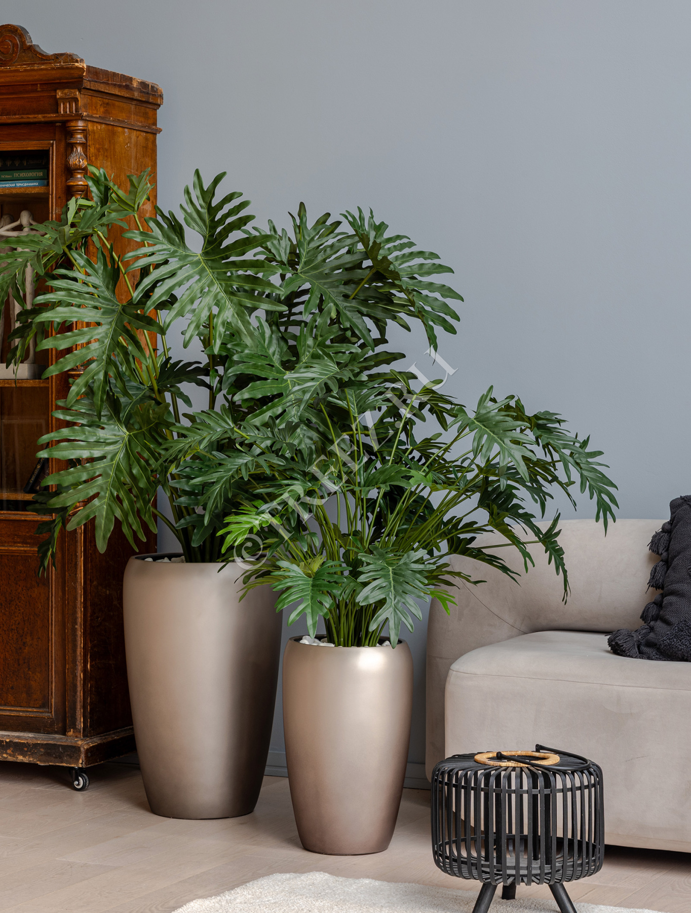 Сет № 105 - Композиция с филодендронами в матовых кашпо Treez Effectory Metal